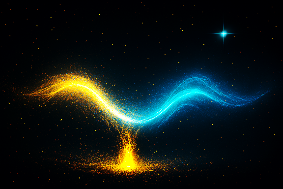 Trois fils de lumière or, argent et bleu saphir s’entrelacent dans l’immensité de l’espace. Ils forment une tresse qui relie des étoiles comme des perles suspendues, chaque nœud brillant doucement comme une mémoire transmise d’âme en âme.