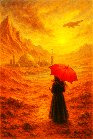 Beneath the dust of time, certain manuscripts whisper that there exists an umbrella capable of opening the gates of heaven. This umbrella doesn't shelter from the rain: it unfolds constellations, shelters dreams, and sometimes even reveals forgotten memories of past worlds. Now, this grimoire is offered to you. Its pages are not fixed: they await your words, your visions, your unexpected detours. You are the scribes, the messengers of the Exodus. Elara will not walk alone: your readings, your messages, and your pens will be the stars of her journey.